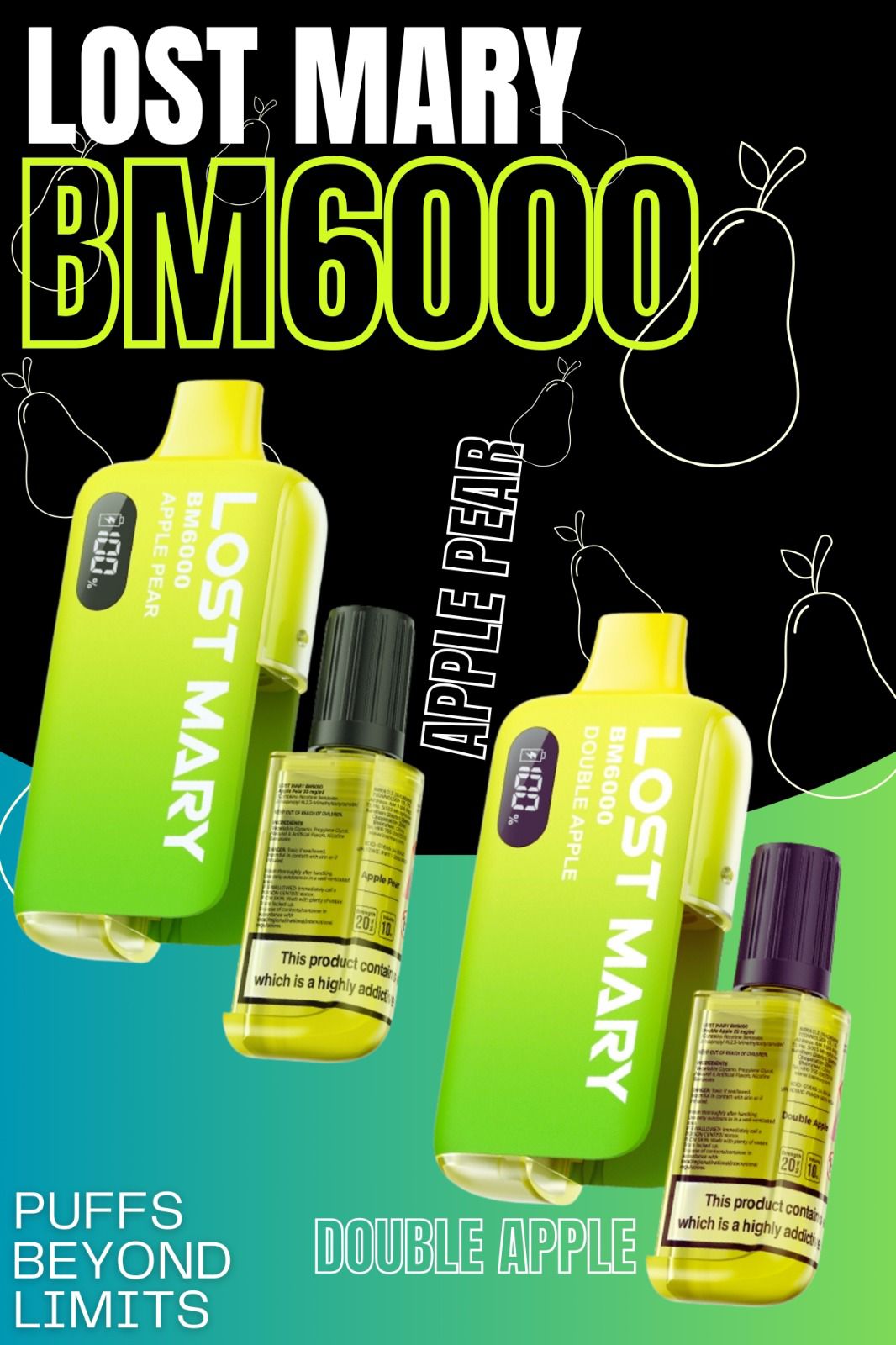 • Number of puffs: up to 6000 (manufacturer's data not guaranteed)